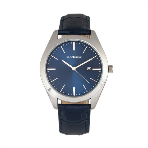 Breed Louis Leather-Band Watch w/Date - Blue