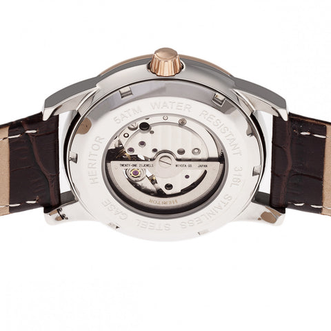 Heritor Automatic Davidson Semi-Skeleton Leather-Band Watch - Rose Gold/Silver