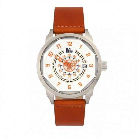 Reign Lafleur Automatic Leather-Band Watch w/Date - Silver/Orange