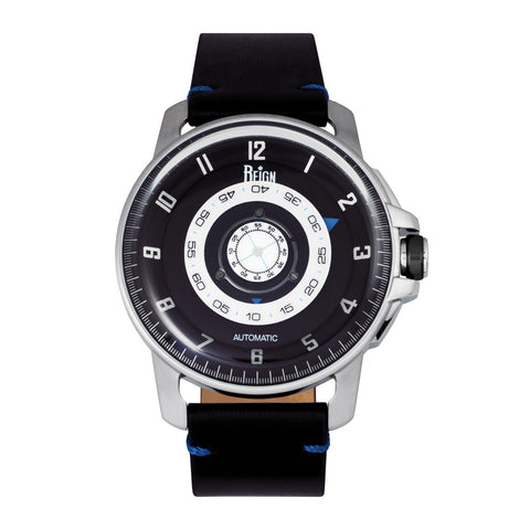 Reign Monarch Automatic Domed Sapphire Crystal Leather-Band Watch - Silver/Black